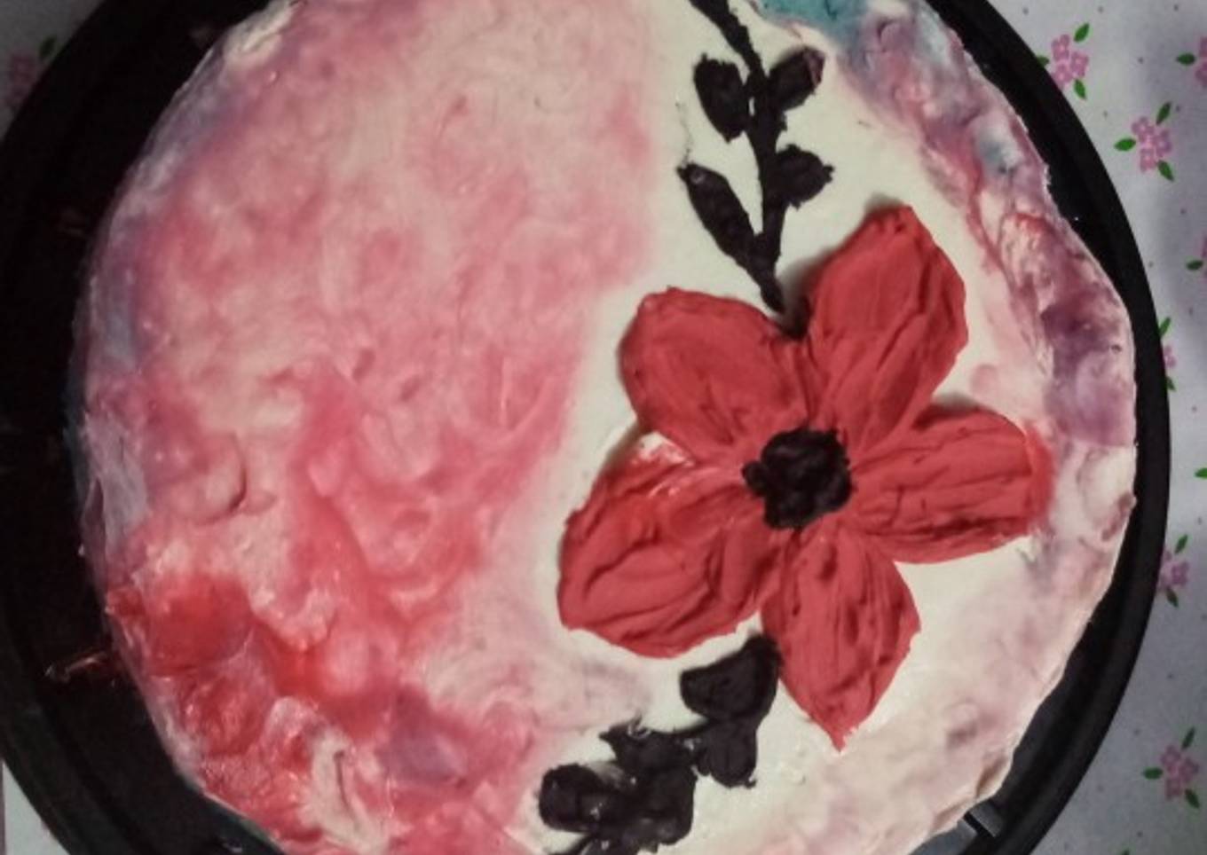 - Para hacer la flores usaremos el buttercream rojo y una pala para repostería, para efecto de manchas usaremos una hora de colorante rojo y una de azul, los untaremos en el pastel de forma intercalada y listo