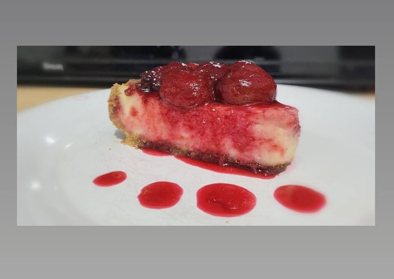 - En lo que se hornea el cheesecake, en un recipiente agregar las frambuesas junto con el azúcar y un poco de agua hasta que se reduzca, añadir la fécula de maíz hidratada con el jugo de limón.