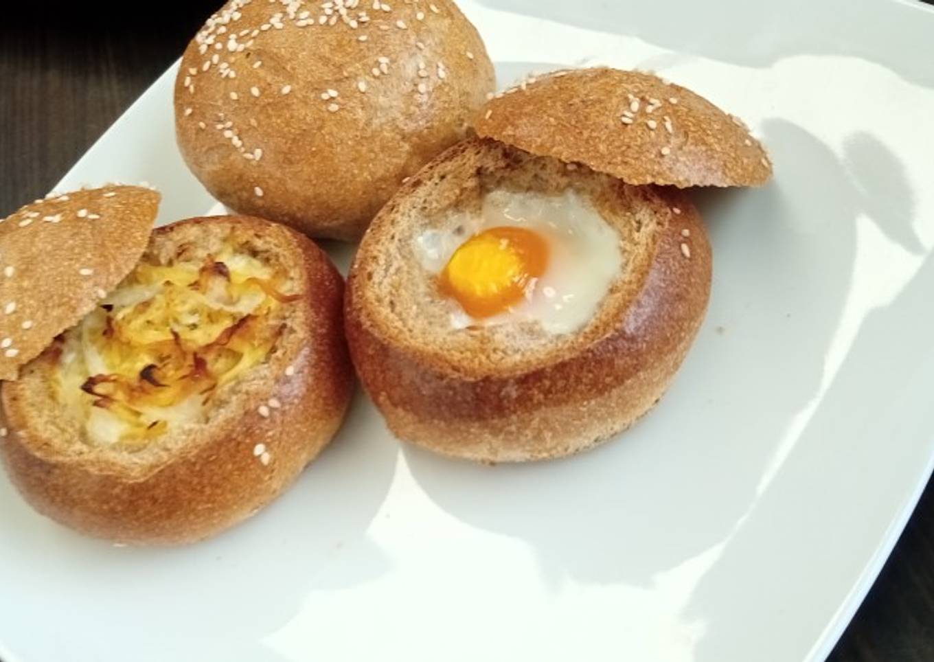 - Ya que haya doblado su tamaño hacerle cavidades, barnizar con huevo, poner ajonjolí y poner a hornear.