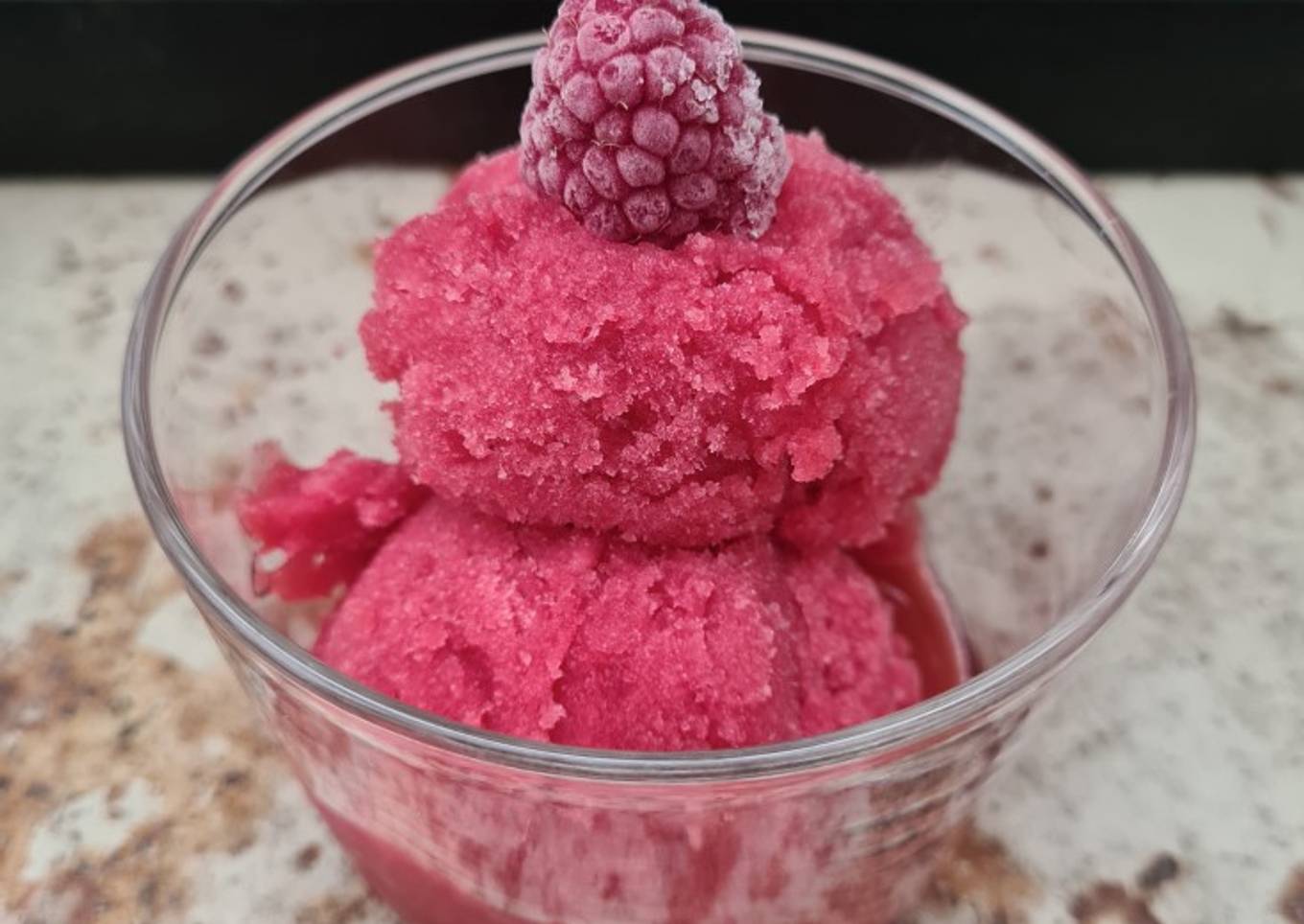 Steps to make to make Sorbete de frambuesa y vino rosado