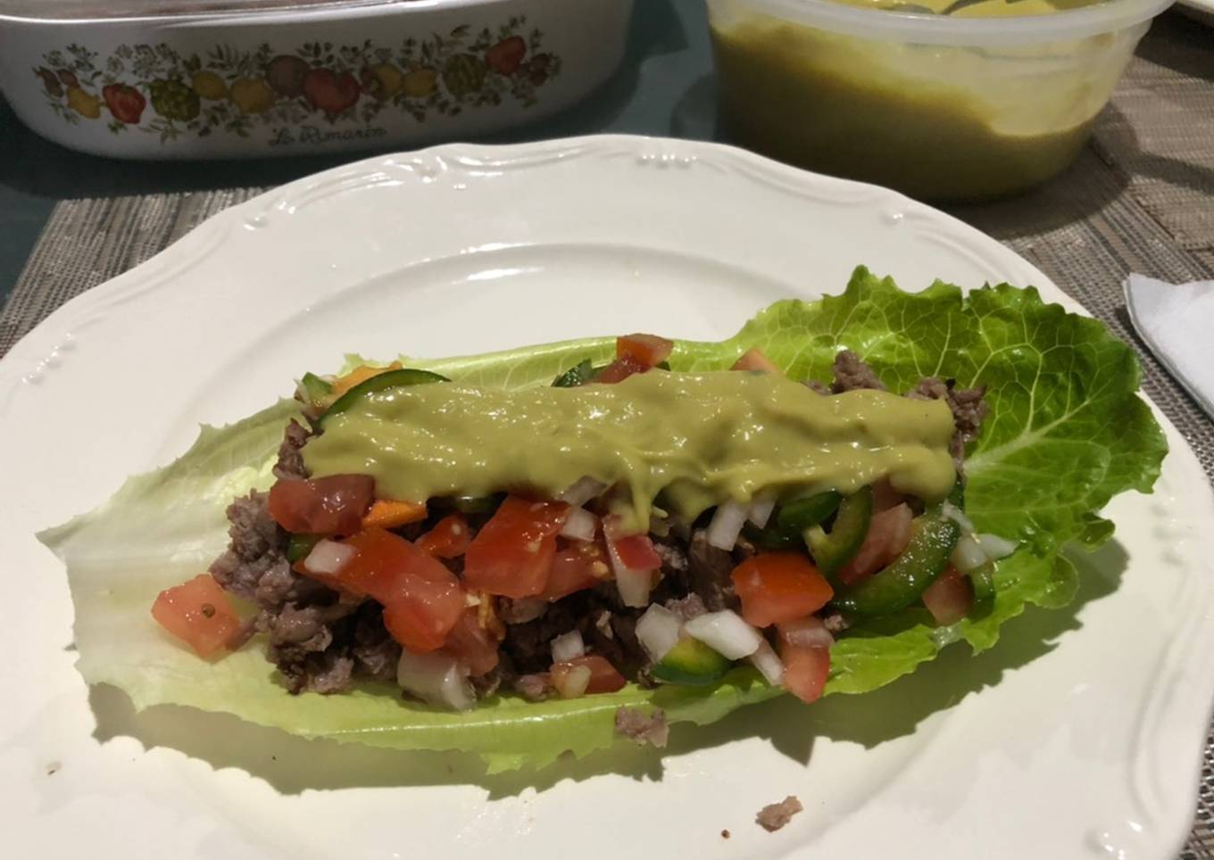 - Armamos el taco light sonorense sobre la lechuga orejona, carne, salsa y dip de guacamole