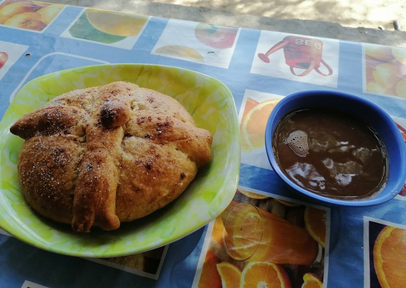 - Hornear a 180 °C. Dejamos enfriar y pintamos con mantequilla derretida y espolvoreamos az煤car y canela en polvo.