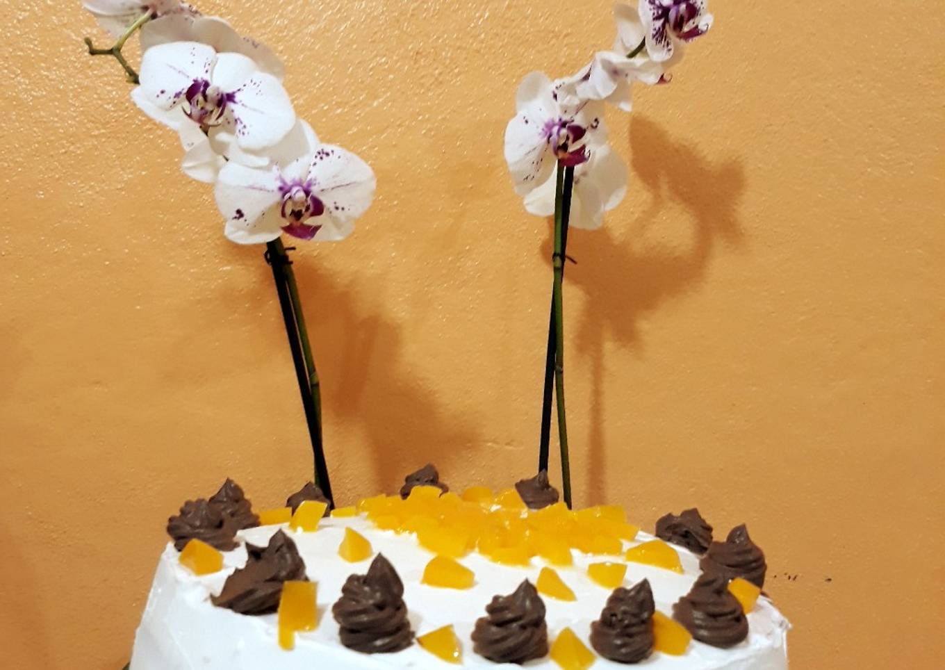 - Dividir el pan de vainilla en dos o tres discos dependiendo del grosor del bizcocho. Remojar con las Tres leches, rellenar con durazno y un poco de la crema de vainilla.