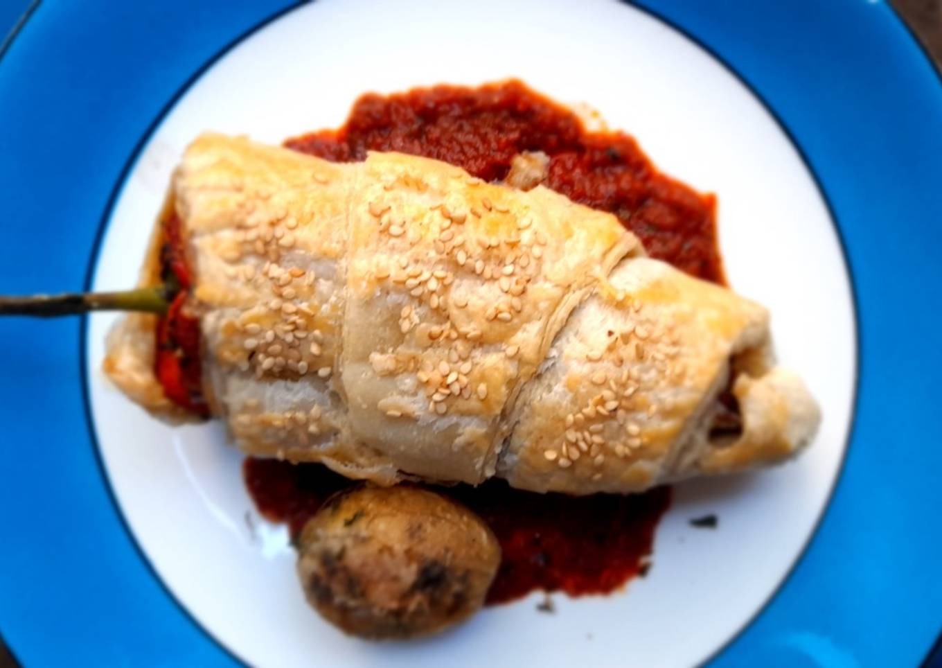 Rollo de chile poblano hojaldrado