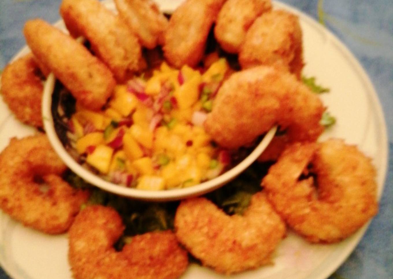 Camarones con coco y salsa de mango
