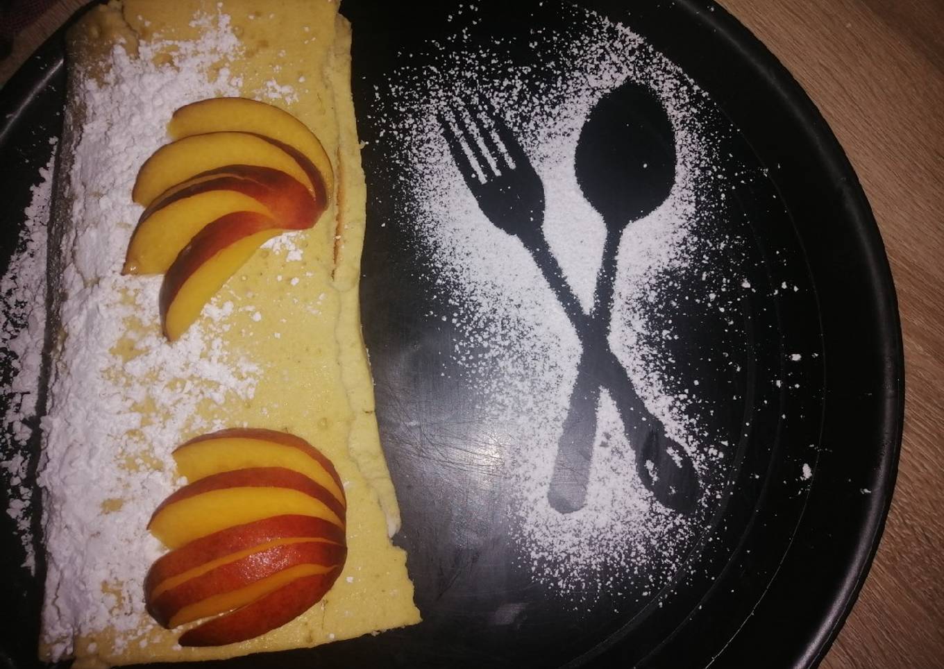 - Colocamos az煤car glass encima del rollo, un poco de durazno y decoramos con lss almendras... Disfruta!