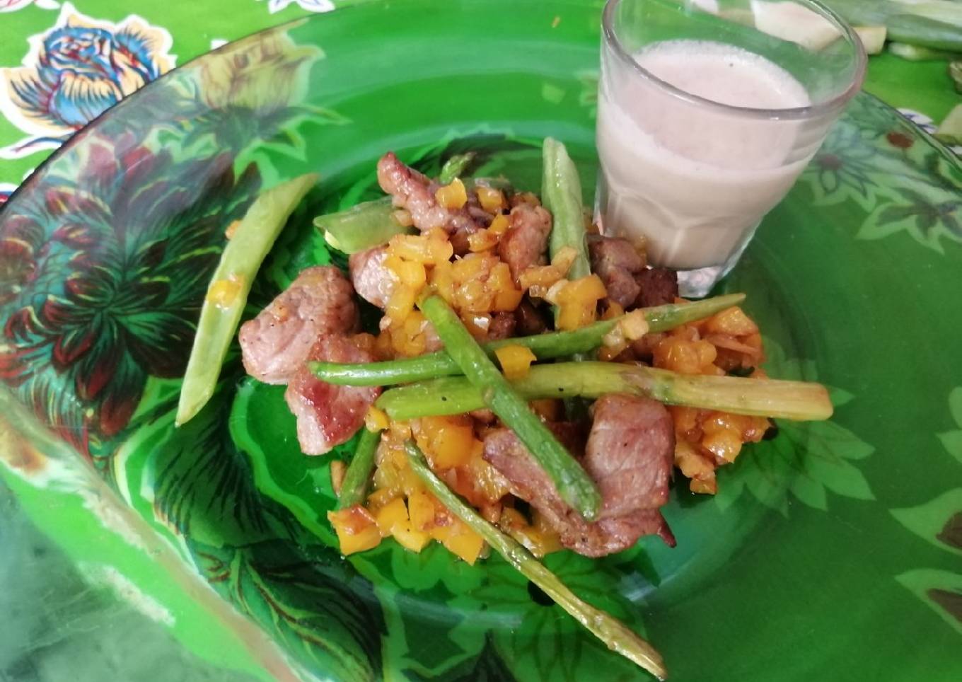 - Agregar el lomo a las verduras y servir acompañado con la salsa.