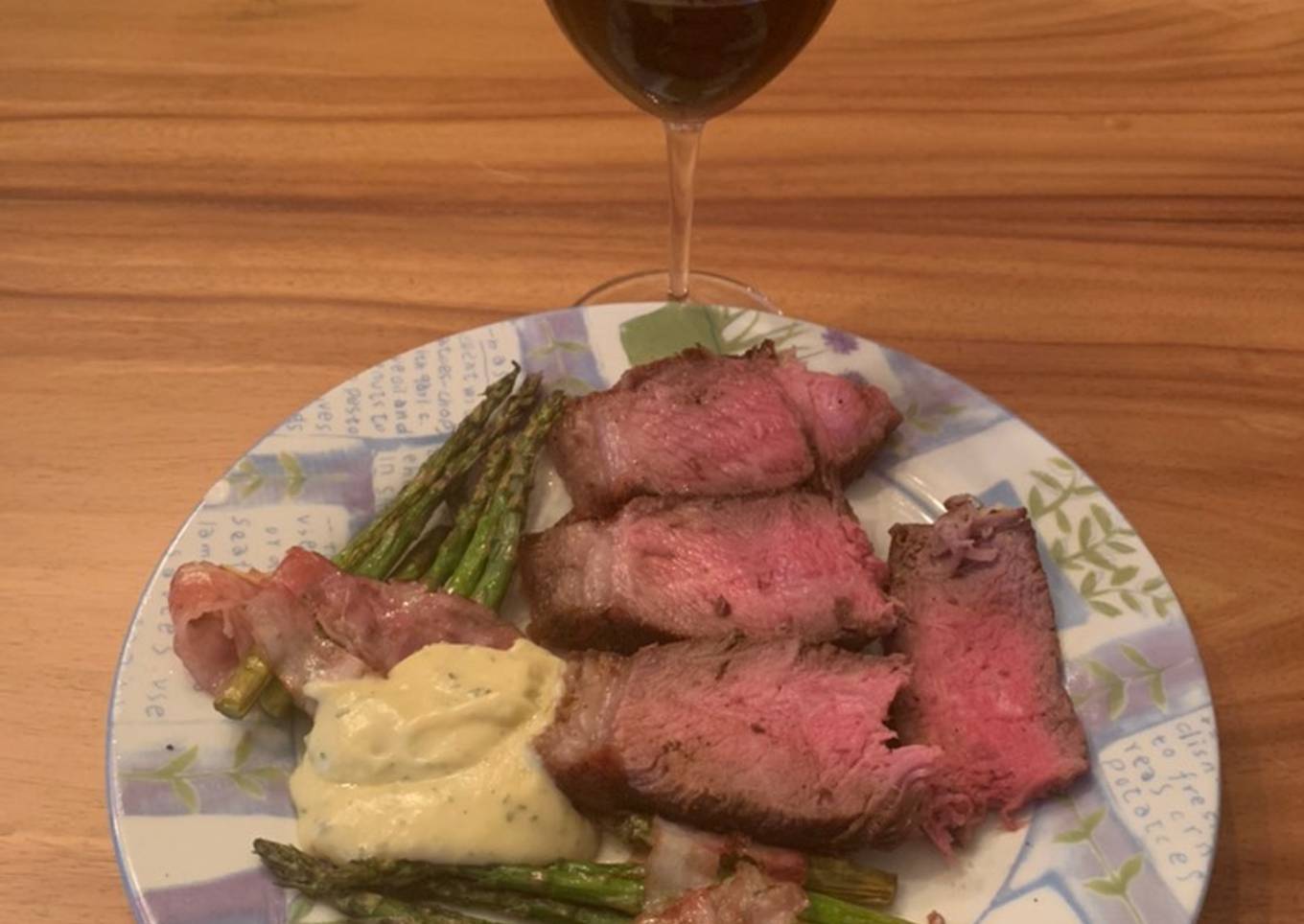 Steps to make to make Porterhouse con espárragos tocino y salsa barnesa