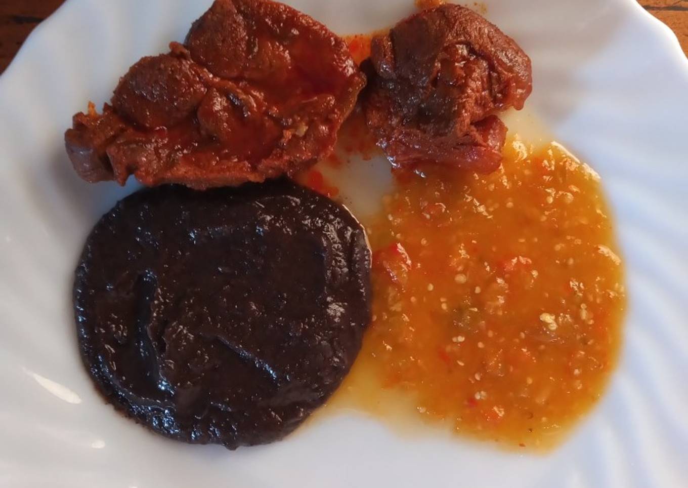 - Para acompañar mi carne horneada, previamente había preparado una pasta de frijol y una salsa de miltomate con chile de árbol.