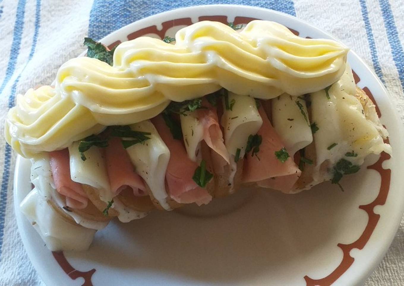 - Una vez cortados los introducimos de forma que tenga un queso un jamón y así sucesivamente hasta llenar nuestra papa.