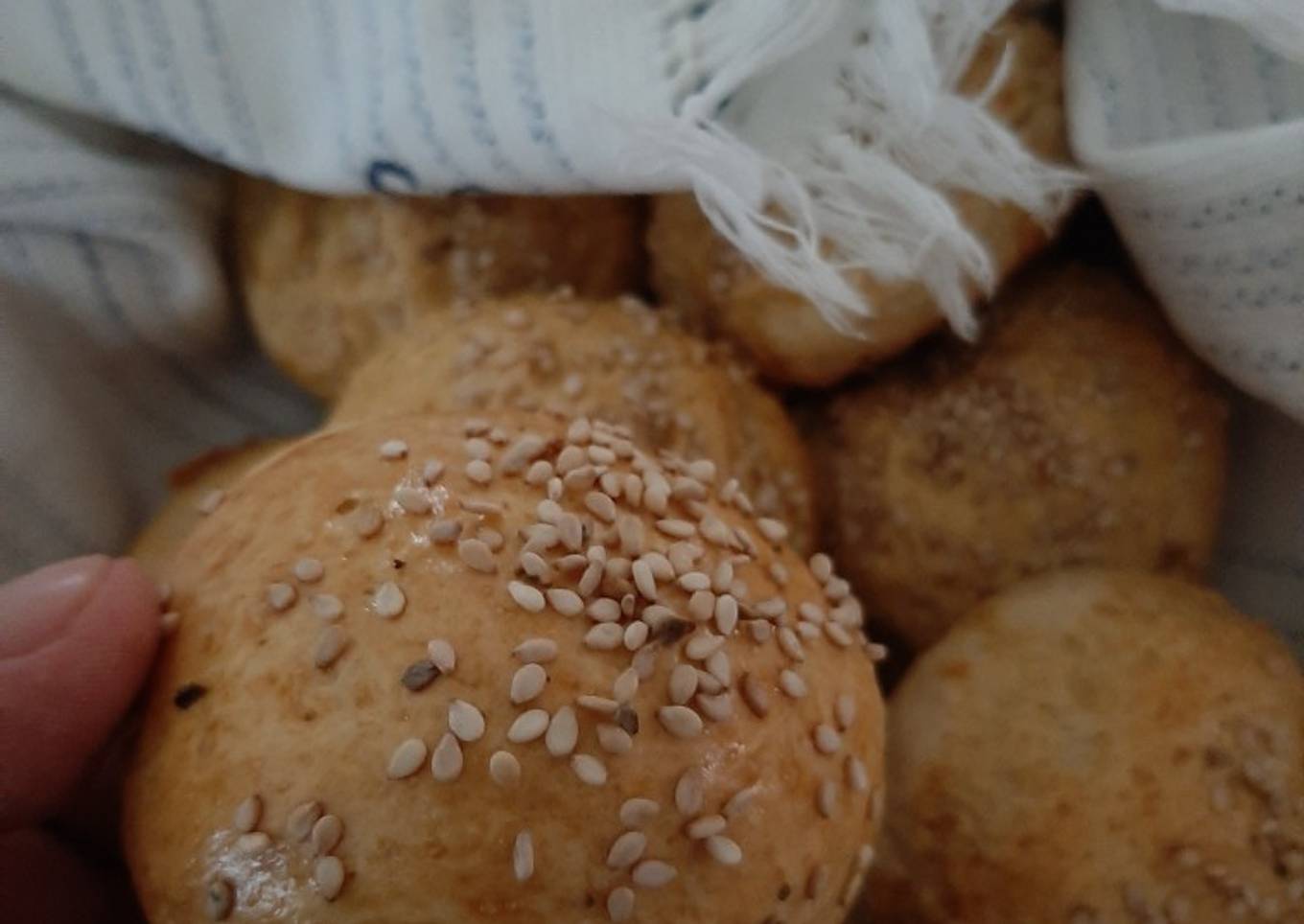 - Cuando los bollos ya hayan aumentado un poco su tamaño principal, con un huevo y la ayuda de una brocha barnizamos el bollo y espolvoreamos con ajonjolí
