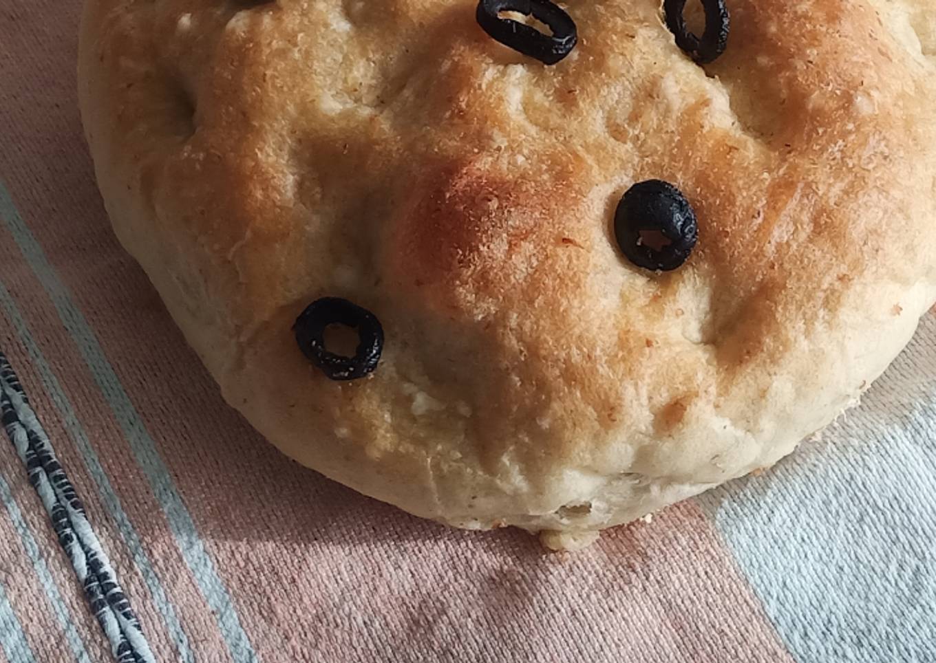 - Dejar fermentar la masa hasta que doble su tamaño, dar forma de ciabatta y decorar con aceitunas.