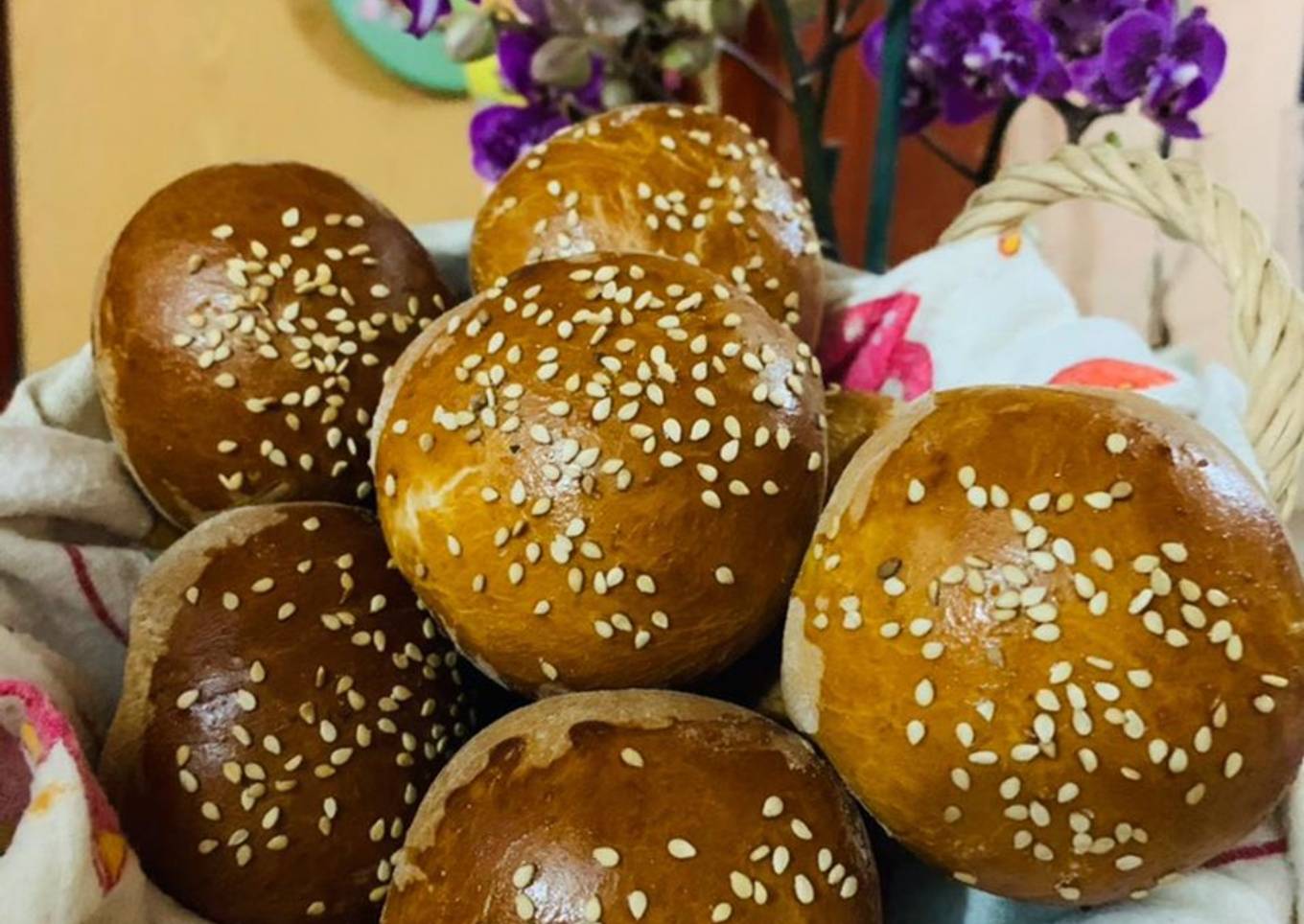 - Poner papel encerado o enharine la charola, colocar encima los bollos, barnizar con huevo y decorar con ajonjolí.