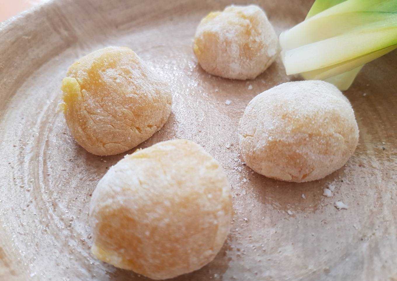 - Ya que la pasta esté fría colocar azúcar glass y formar un cilindro. Formar bolitas del tamaño de una nuez y servir