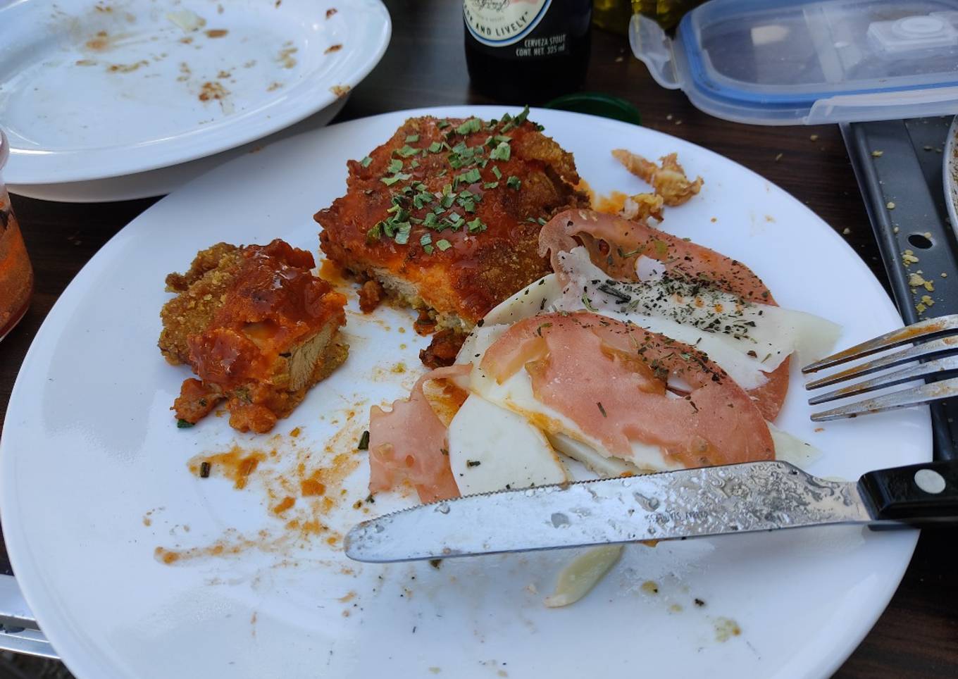 - Para servir, partir en tiras, acompañar con salsa búfalo y un poco de cebollín. Yo agregue una ensalada caprese